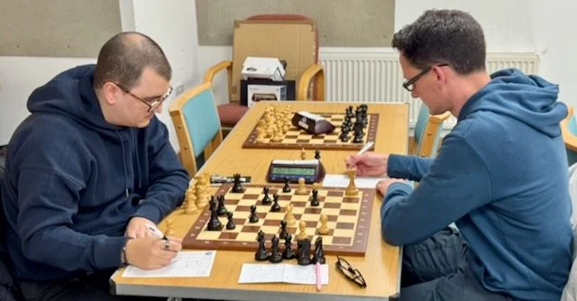 On Board 3, Hugo played with calm precision in his very first Derbyshire League outing. Choosing a solid defensive approach with Black, he waited patiently until the opportunity arose — a neat knight fork that picked off both bishop and rook. From there, Hugo consolidated steadily, trading down to a won endgame before finishing with checkmate. His disciplined play, in the final game to finish, earned himself the win and the draw for the team. He showed exactly the promise this new side is all about.